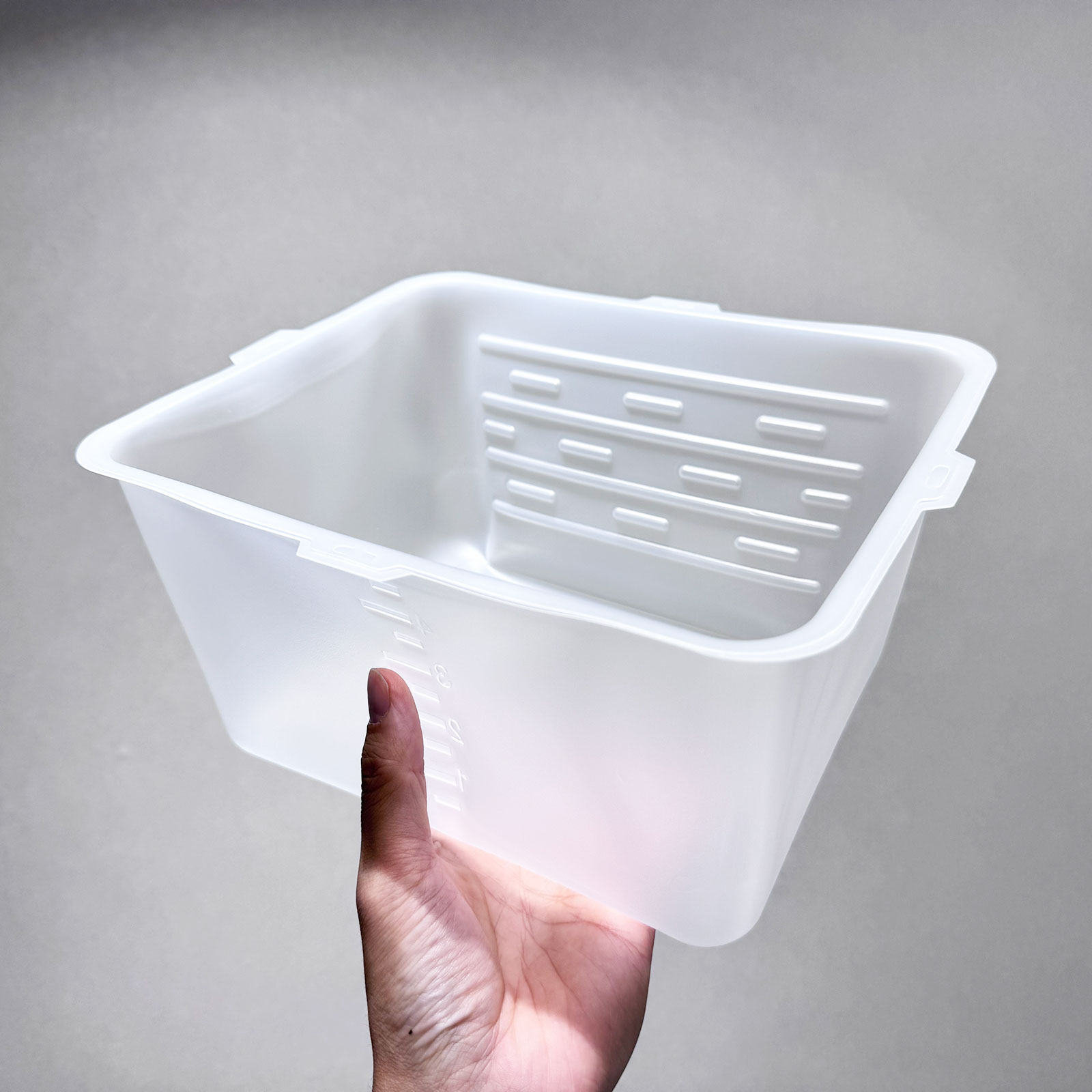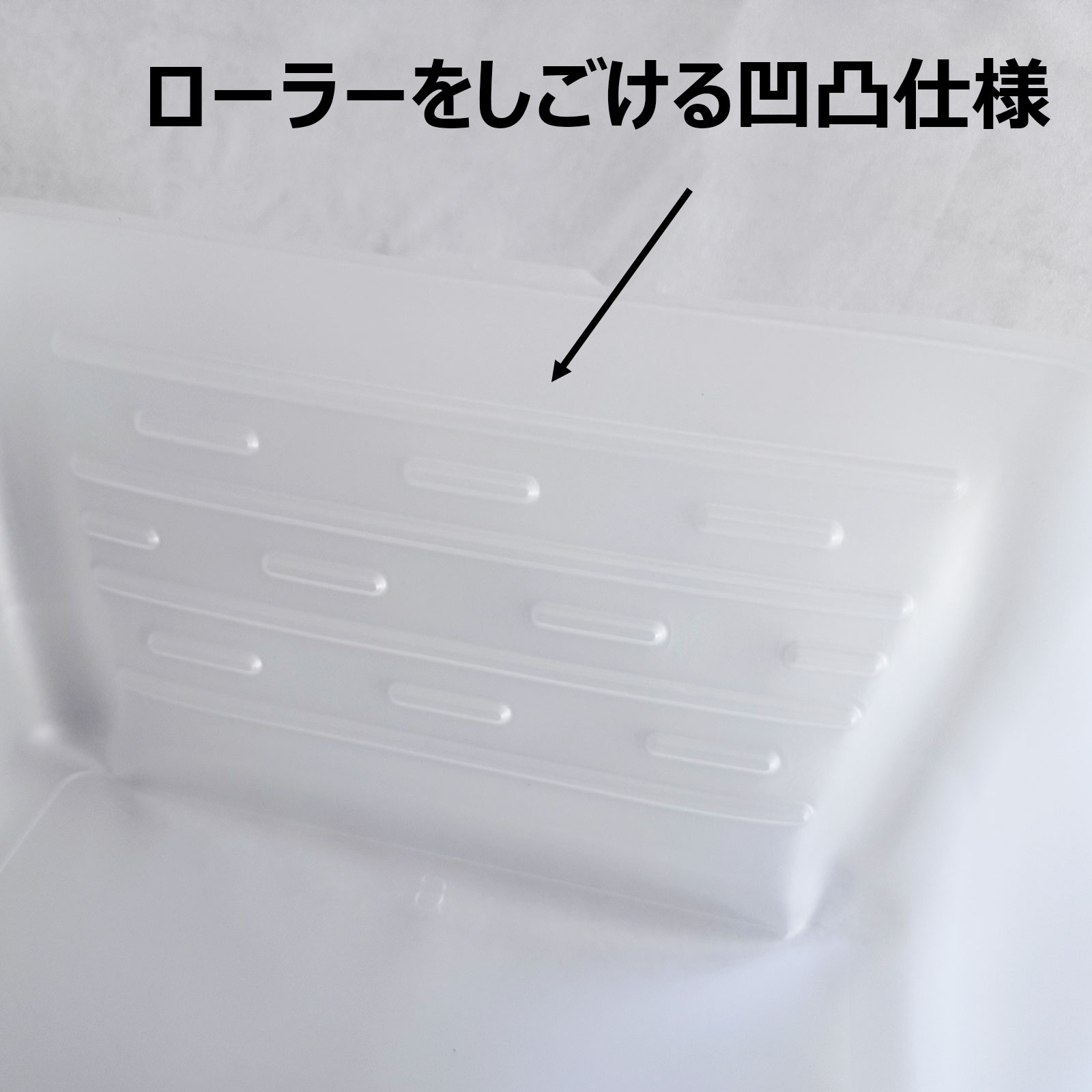 内容器の内側に凸凹があり、ローラーや刷毛に付いた余分な塗料をしごくことができます。