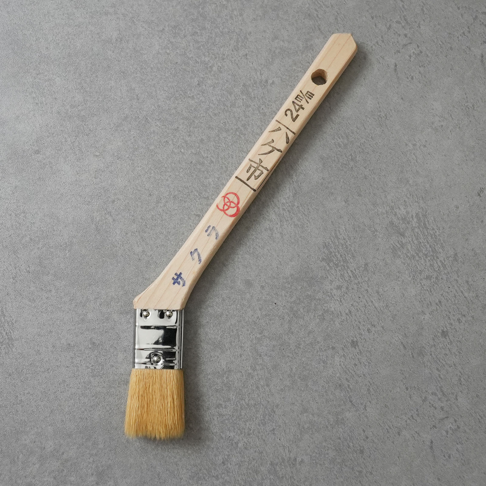 腰の強い高級白山羊毛を使用した、プロ仕様の金巻筋違タイプ刷毛です。