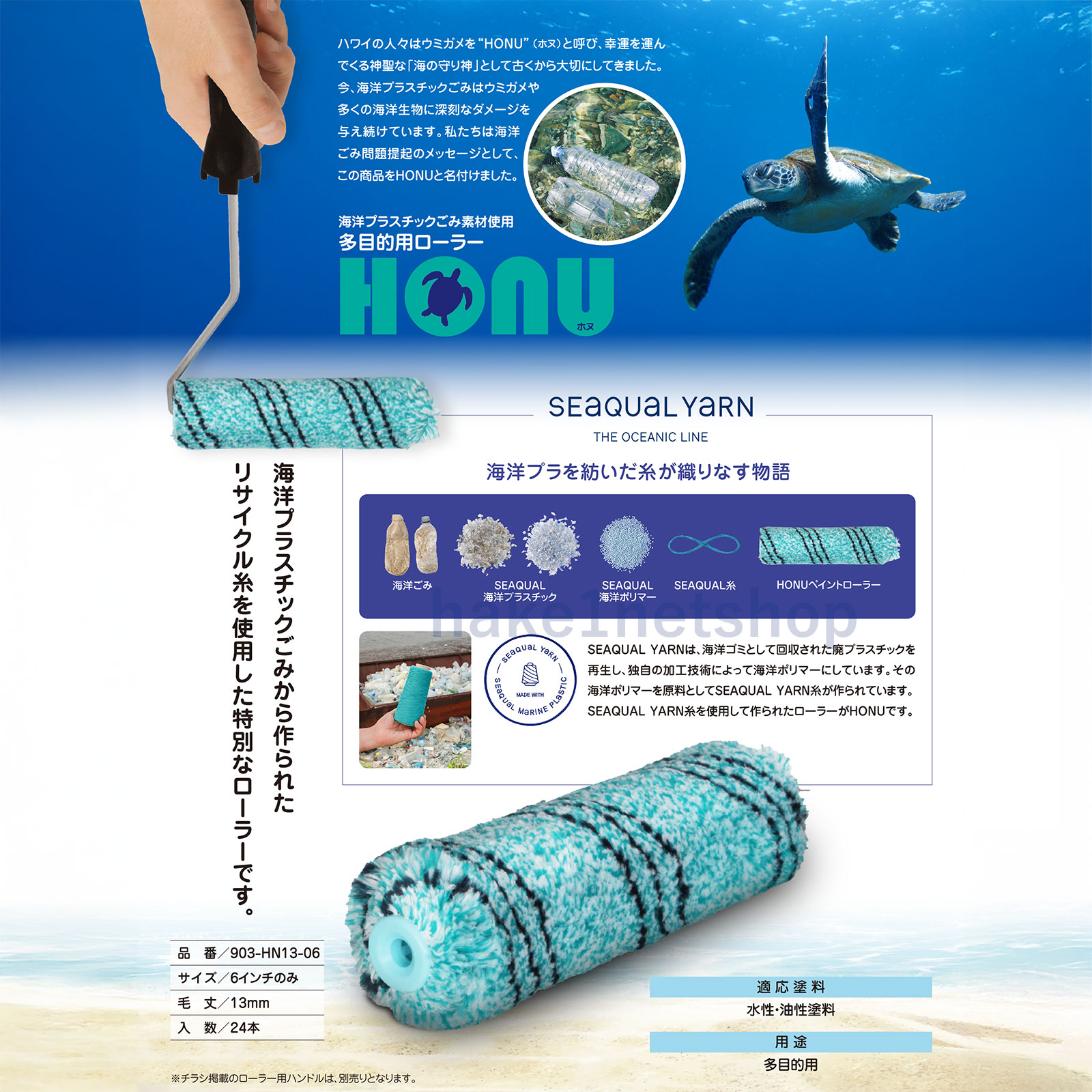 SEAQUAL YARN糸を使用して作られたローラーがHONUです。